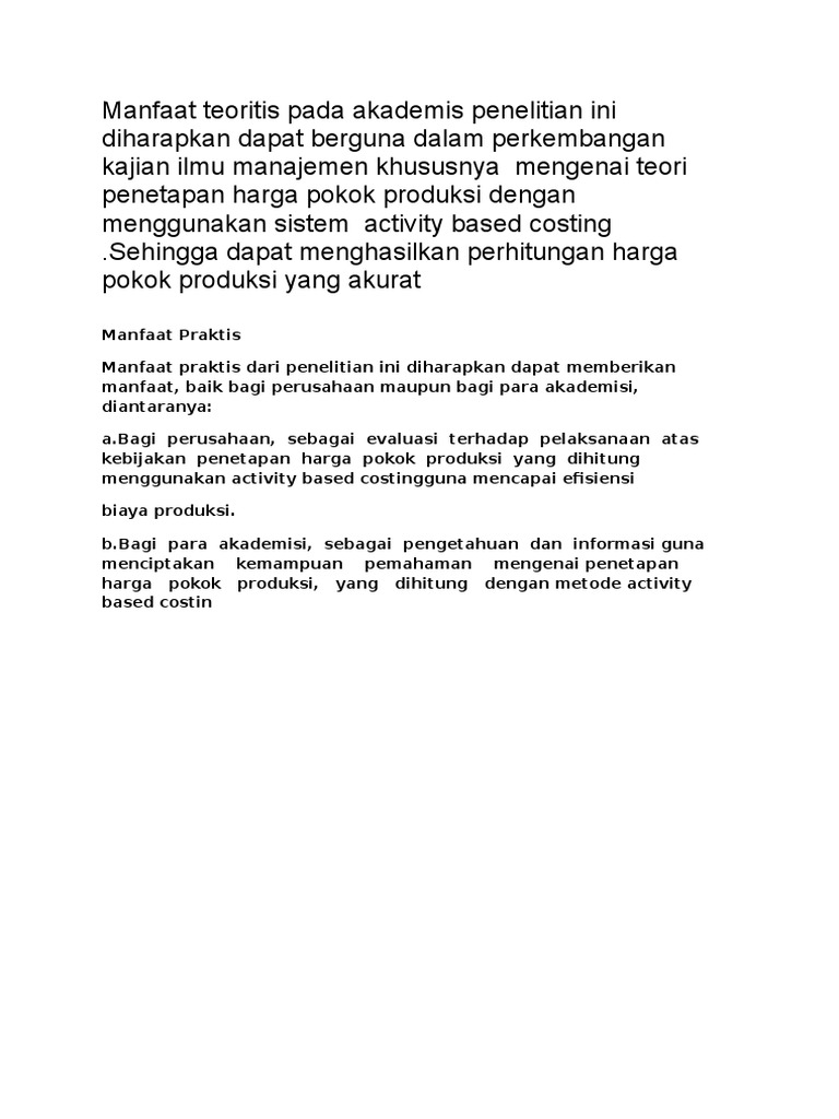 Manfaat teoritis artinya hasil penelitian bermanfaat untuk pengembangan ilmu pengetahuan yang berkaitan dengan obyek penelitian.